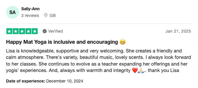 "Lisa, you are just phenomenal—probably one of the best yoga teachers I've ever met! Your studio is beautiful, your guidance is so calming, and every class is a fantastic experience. I can’t wait for the retreat—if last year was anything to go by, this one will be even more amazing!"
