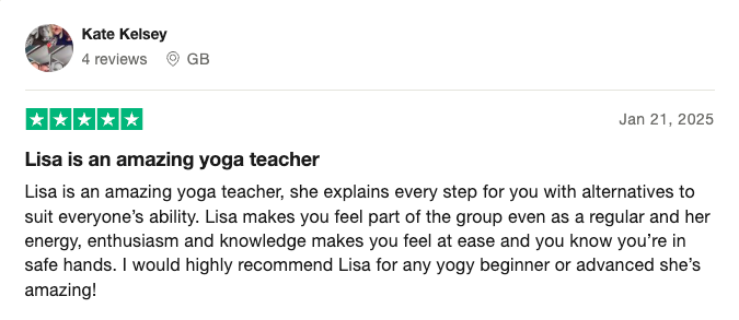 I’ve attended classes, had a one to one lesson and attended the sound bath and yoga workshops and It’s all been wonderful. Lisa is so knowledgeable and has such welcoming and kind energy and her studio is just lovely - as soon as you walk in you start to relax and chill out.